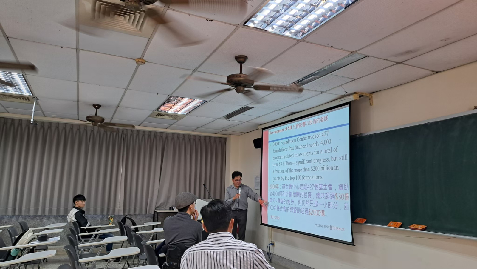 12月13日,東海行政系陳秋政主持人有幸邀請到美國羅格斯大學社會工作學院黃建忠教授。於東海大學社會科學院SS212進行課程講座,以醫療服務的涵蓋程度為例,討論政府、民間組織與市場間的互動。以及非營利組織與傳統營利企業兩者間的平衡,也就是創新社會企業的產生。 黃建忠教授講述社會企業如何透過商業的營利手段來幫助弱勢族群,以及近年來該類型組織崛起的趨勢,其中社會企業最大的特色在於,企業能夠有營利所得,並以有著「窮人的銀行」之稱的格萊珉銀行作為案例探討。針對格萊珉銀行提供弱勢族群信貸額度之政策做討論,其中貸款的回收率是最值得關注的一點,該銀行打破了社會上常有的「窮人就是比較還不出錢」的刻板印象。 透過本次的講座,使同學們思考社會企業在兼具營利及善盡社會責任的前提下,能夠有何種創新或突破。此外也有助於同學們對於未來工作的定位,因應聯合國SDGs永續發展目標、與CSR逐漸被重視的趨勢下,社會影響力評估研究與實務工作也能成為同學們就業方向的考量。