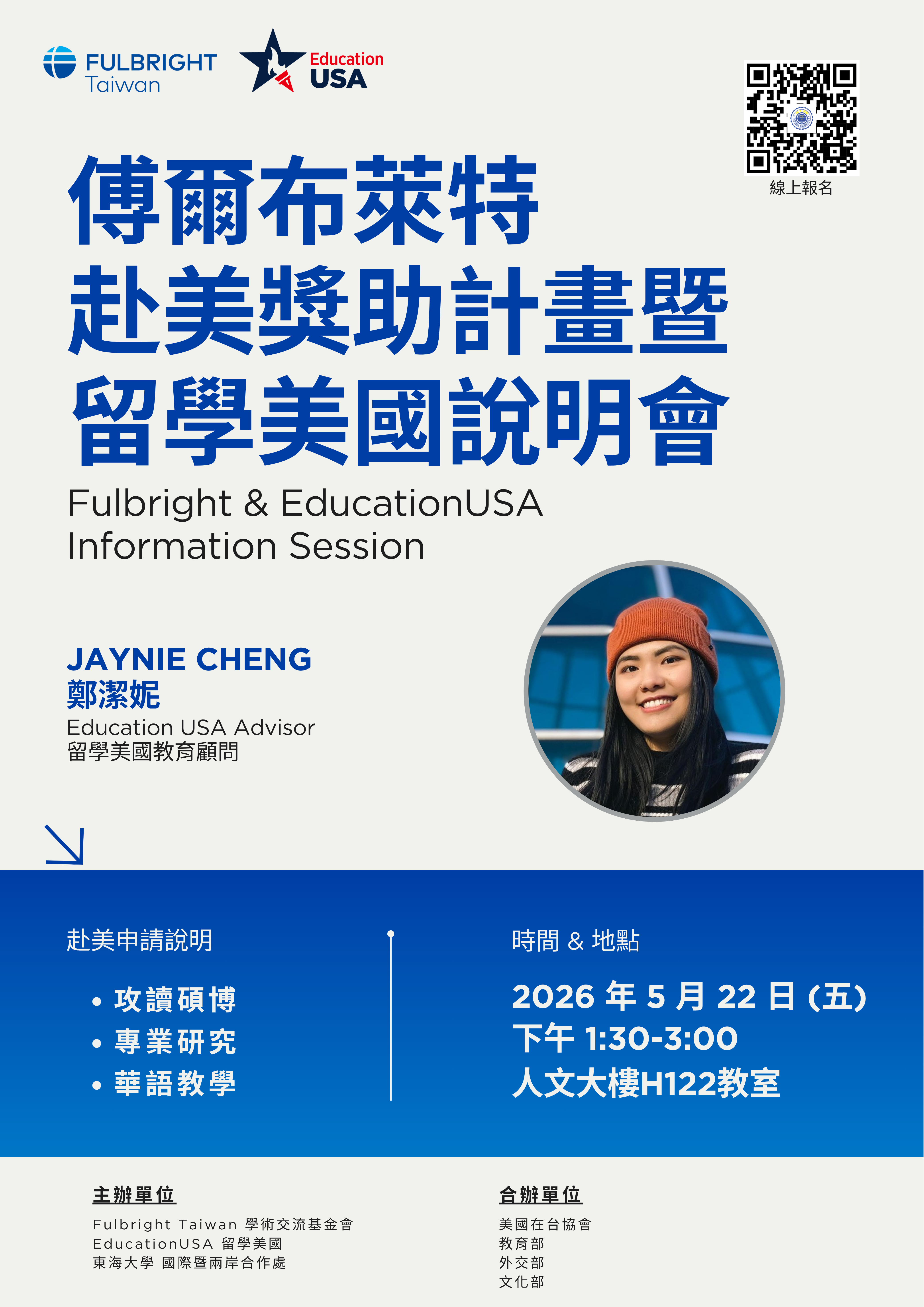 東海大學國際處與 Fulbright Taiwan 合作,為大家帶來第一手的赴美資訊!