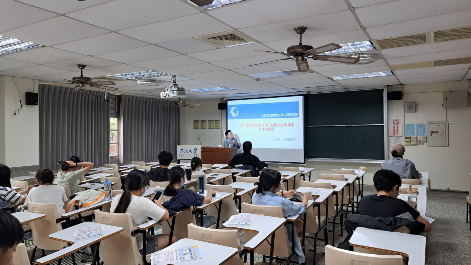 2023/10/04,榮幸邀請到弘光科技大學通識教育中心專案助理教授,宋威穎博士來到課堂與同學們分享社會參與的經驗,與社區連結、推動地方發展可以做的事前準備、過程中的細節,以及實例分享等等,讓同學們對於進入社區前的準備,有更明確的方向,並且也有助於同學們進行期末的報告(進入東海商圈了解汙染源,與商家交流、溝通,以促進商家安裝並使用油脂截留器)。 宋威穎博士在課堂中表示,學問不一定是社區所需要的,因此進入社區前需做足的準備,可以從文本、報導、計畫與會議紀錄等等,了解社區的人文歷史與社區中的關鍵意見領袖,與社區交流、溝通會較為順利。若無做足準備,可能會使社區對於學生的負面印象加深,對於之後再進入社區,會加深難度。社區中的關鍵意見領袖多為社區發展協會、地方政府、理事長、幹事等等,若能從中找到社區與學校的中介人,協助學校與社區溝通,會使社區連結的過程更加順利。 宋威穎博士以哈瑪星願景工作坊為例,哈瑪星(位於高雄市鼓山區)街道狹窄,但後來因為觀光興起,導致遊覽車等觀光車流量多,在當地衍生出問題如碳排放量多、道路安全上的疑慮。在了解社區利害關係人的立場與想法,會發現有許多的分歧意見。因此需要找出社區的核心共識,執行推動才會較為順利。哈瑪星最後推行的解決方式便是限制遊覽車的車流,也使遊客以步行的方式進入哈瑪星觀光,更深度的走讀、了解社區的人文歷史。透過這個案例,讓同學更清楚進入社區的事前準備與過程中需注意的細節與可能面臨的困難。