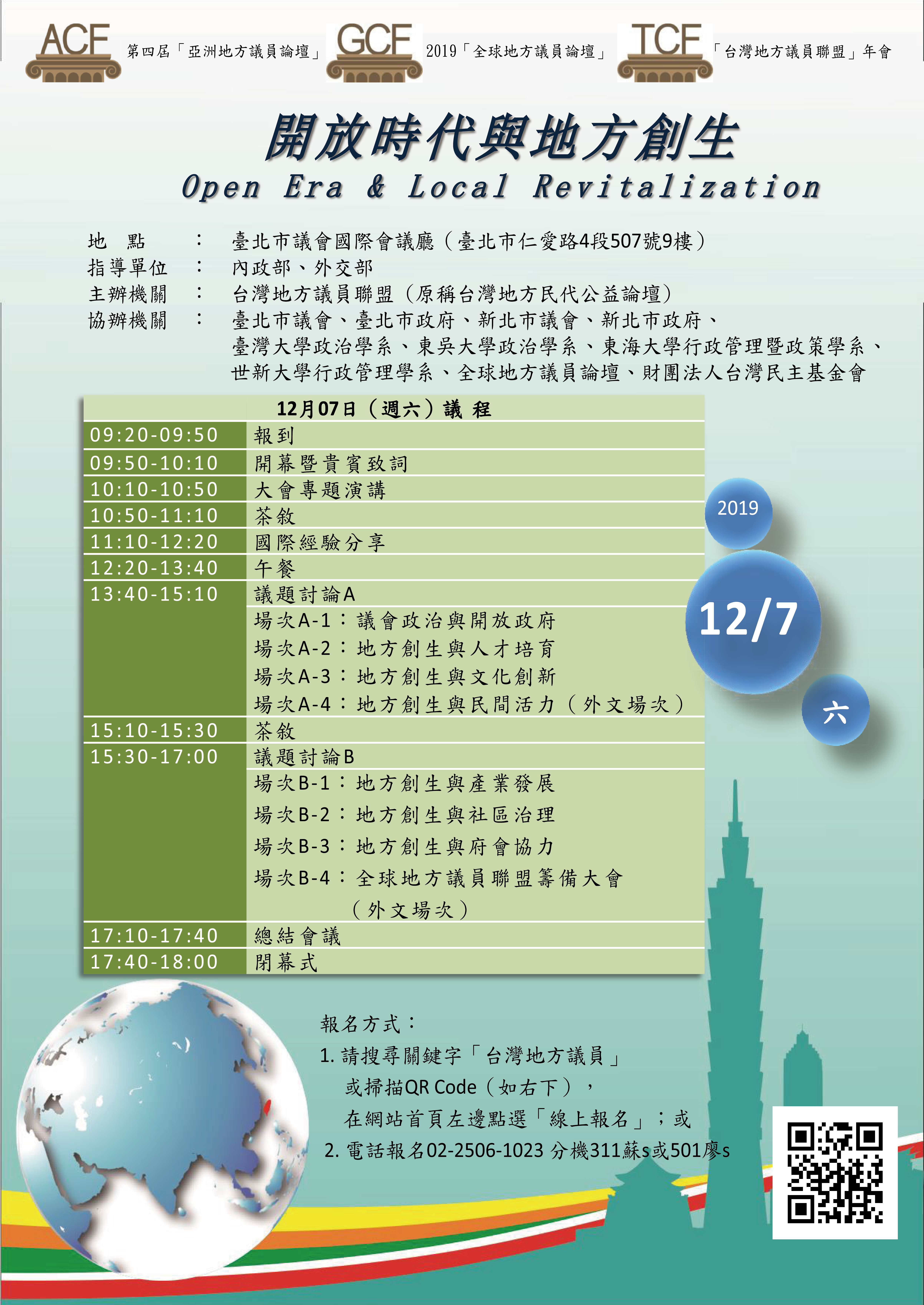 【研討會】第四屆「亞洲地方議員論壇」(ACF)、2019年「全球地方議員論壇」(GCF)暨「台灣地方民代公益論壇」(TCF)年會